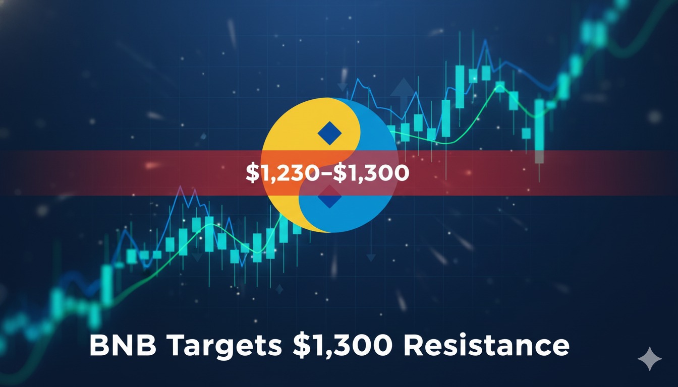 Binance Coin (BNB) gains renewed momentum after consolidation, targeting $1,230-$1,300 resistance with strong market support and volume.