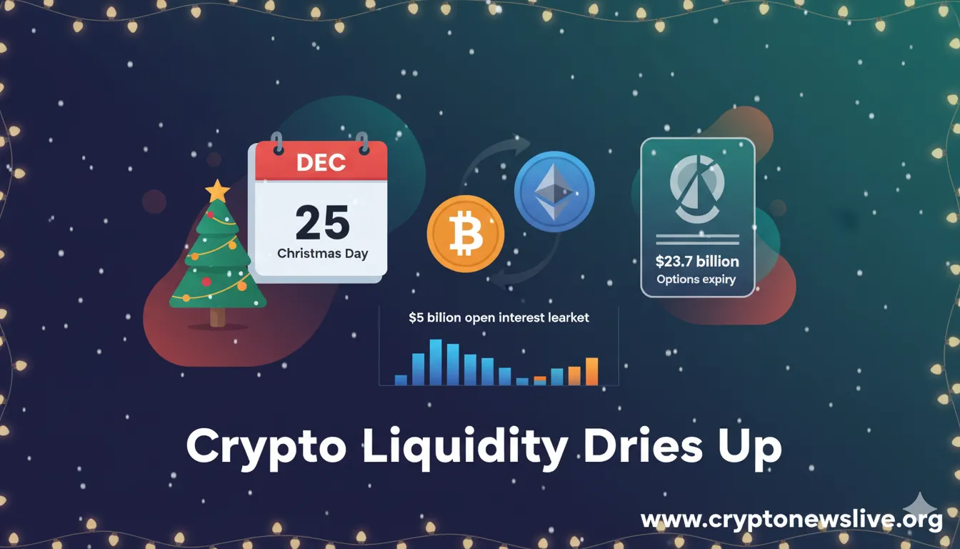 Bitcoin and Ethereum markets lose $5 billion in open interest as traders flee before Christmas, while a record $23.7 billion options expiry looms amid thinning liquidity and potential tax-loss selling volatility.