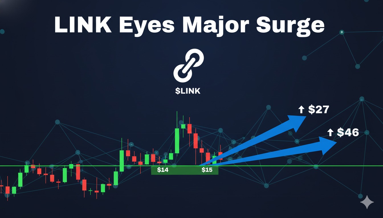 Chainlink $LINK holds critical $15–$14 support with potential surge to $27–$46, boosted by strong volume and expanding compliance network.
