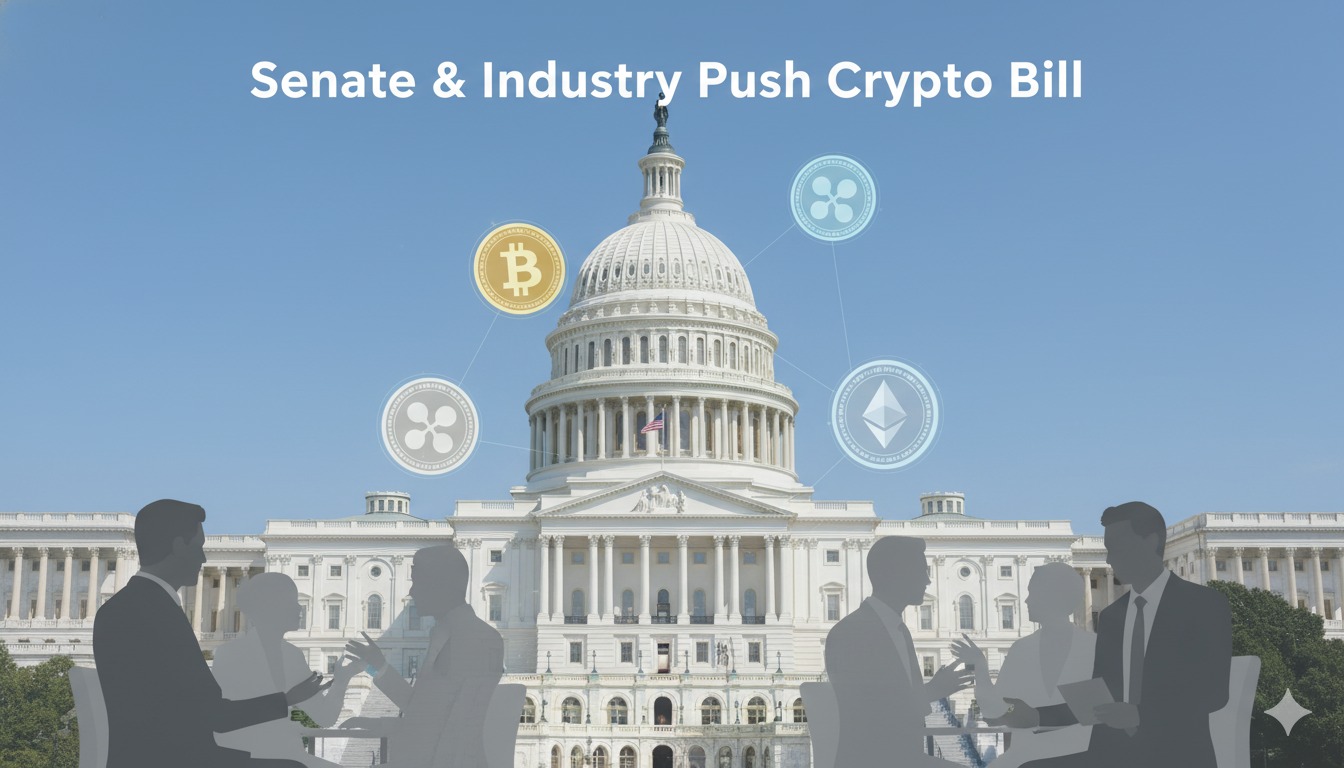 Senate Democrats and crypto industry leaders, including Coinbase and Ripple executives, intensify efforts to advance a crypto market structure bill amidst ongoing debates over DeFi regulation and bipartisan collaboration.