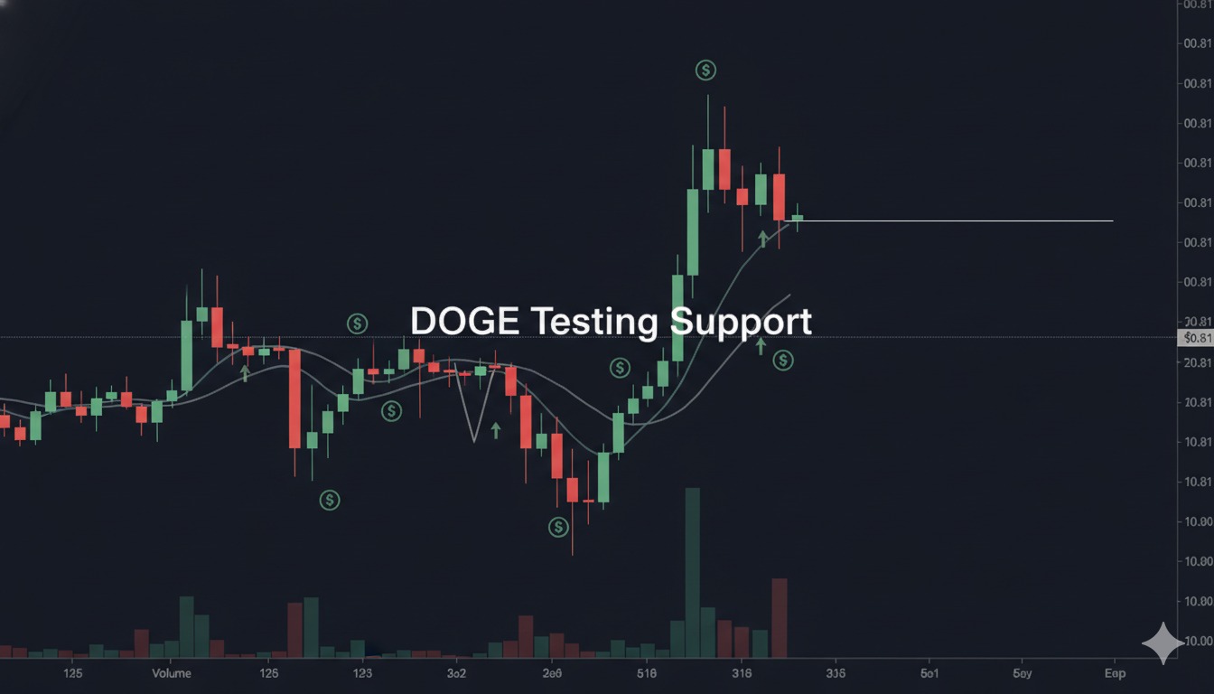 Dogecoin nears critical $0.081 support amid early reversal signs seen in technical patterns. Buyers cautiously return as $DOGE may break from bear trend.