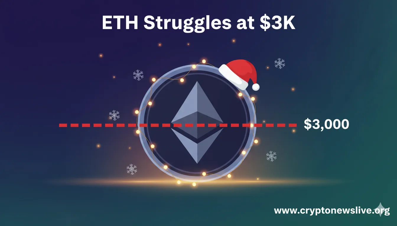 The second-largest cryptocurrency remains trapped in a decisive range that could determine its trajectory through year-end. ETH trades near $2,930 as of December 24, down over 1% in 24 hours, marking another failed attempt to establish stability above the psychological $3,000 threshold.