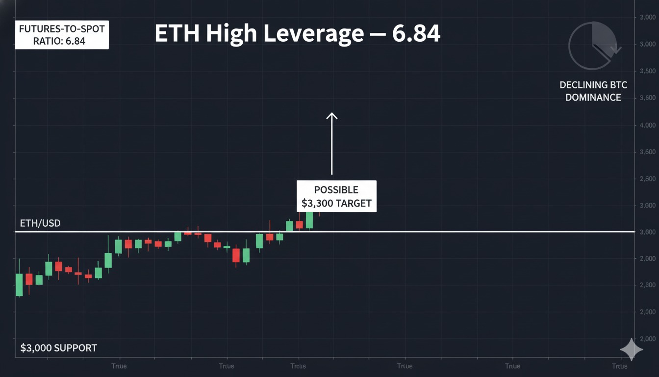Ethereum traders aggressively increase leverage as futures-to-spot ratio surges to 6.84, the highest of Q4. With Bitcoin dominance declining and ETH holding $3,000 support, analysts debate whether a December rally to $3,300 is on the horizon.