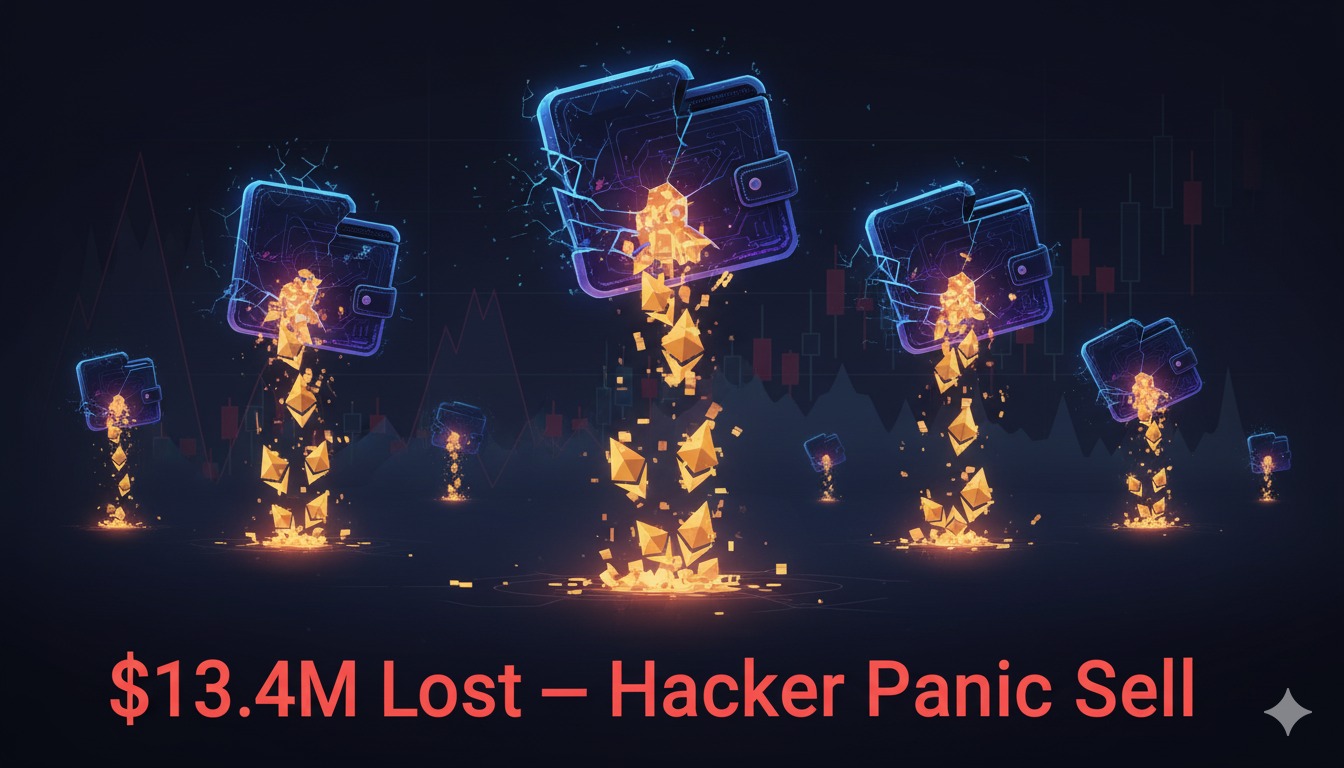 Six hacker-controlled wallets collectively suffered losses exceeding $13.4 million after hurriedly selling Ethereum amid a volatile crypto market correction, signaling panic in illicit crypto holdings.