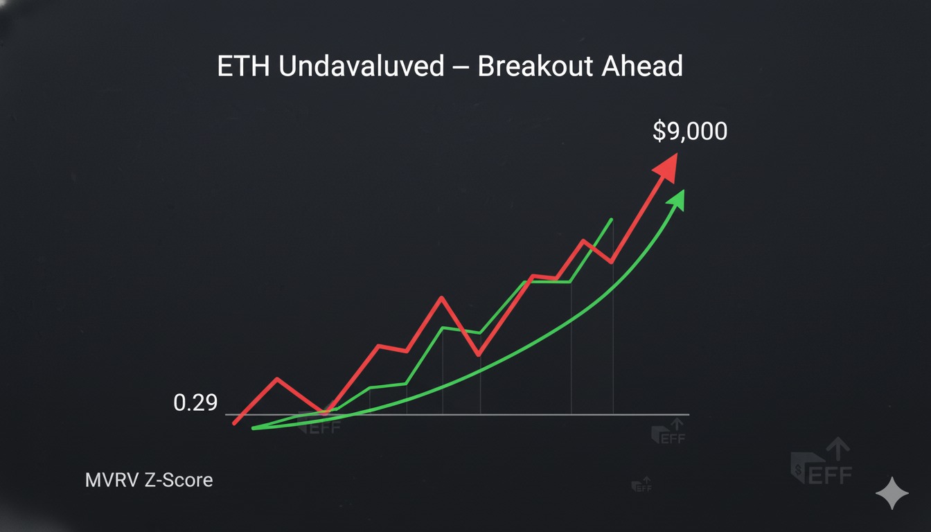 Ethereum's MVRV Z-Score at 0.29 signals undervaluation, supported by massive ETF inflows and key technical patterns that suggest a breakout to $9,000 is near.