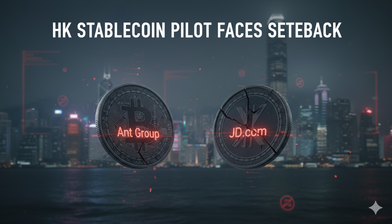 Hong Kong's stablecoin pilot program faces a major setback as Ant Group and JD.com halt their stablecoin launches following Beijing's regulatory crackdown on private currencies.