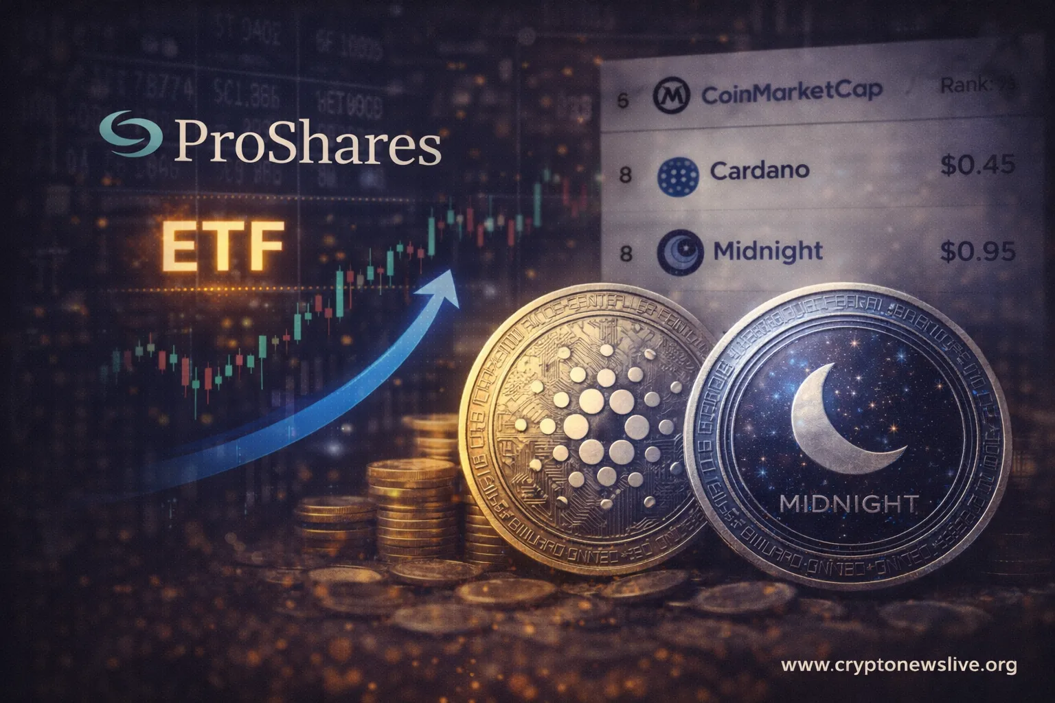 ProShares files for Cardano futures ETF while ecosystem privacy sidechain Midnight breaks into top CoinMarketCap rankings amid strong community sentiment.