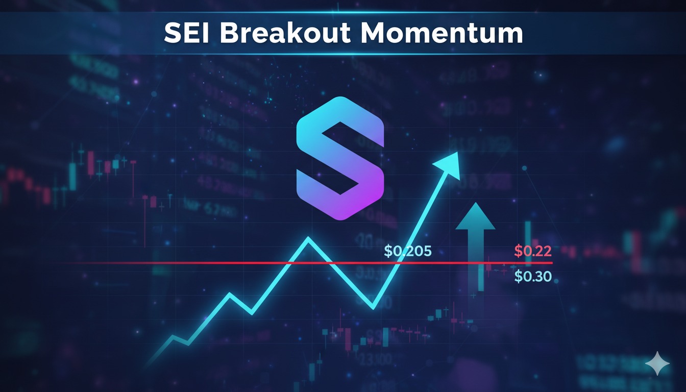 SEI breaks above $0.205, eyeing $0.22 resistance with potential 50% rally to $0.30 after long downtrend breakout.