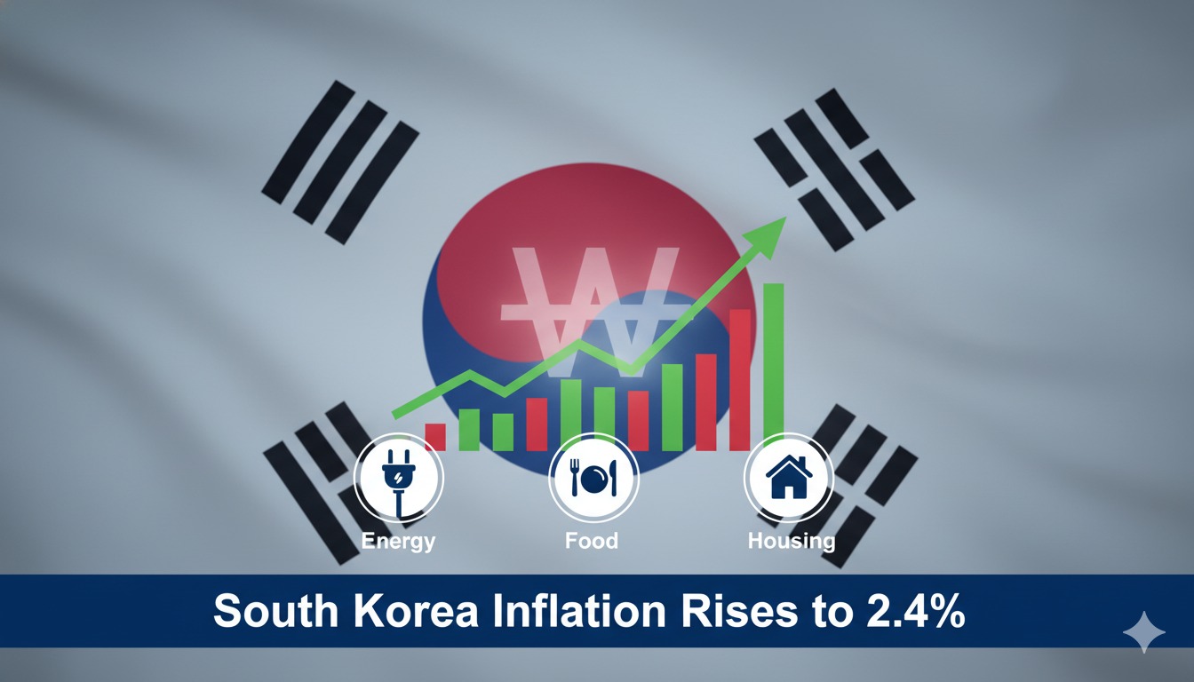 South Korea's consumer inflation surged to 2.4% in October, fueled by a weaker won, rising energy and food prices, and continued housing cost increases, pushing inflation above the central bank's target.